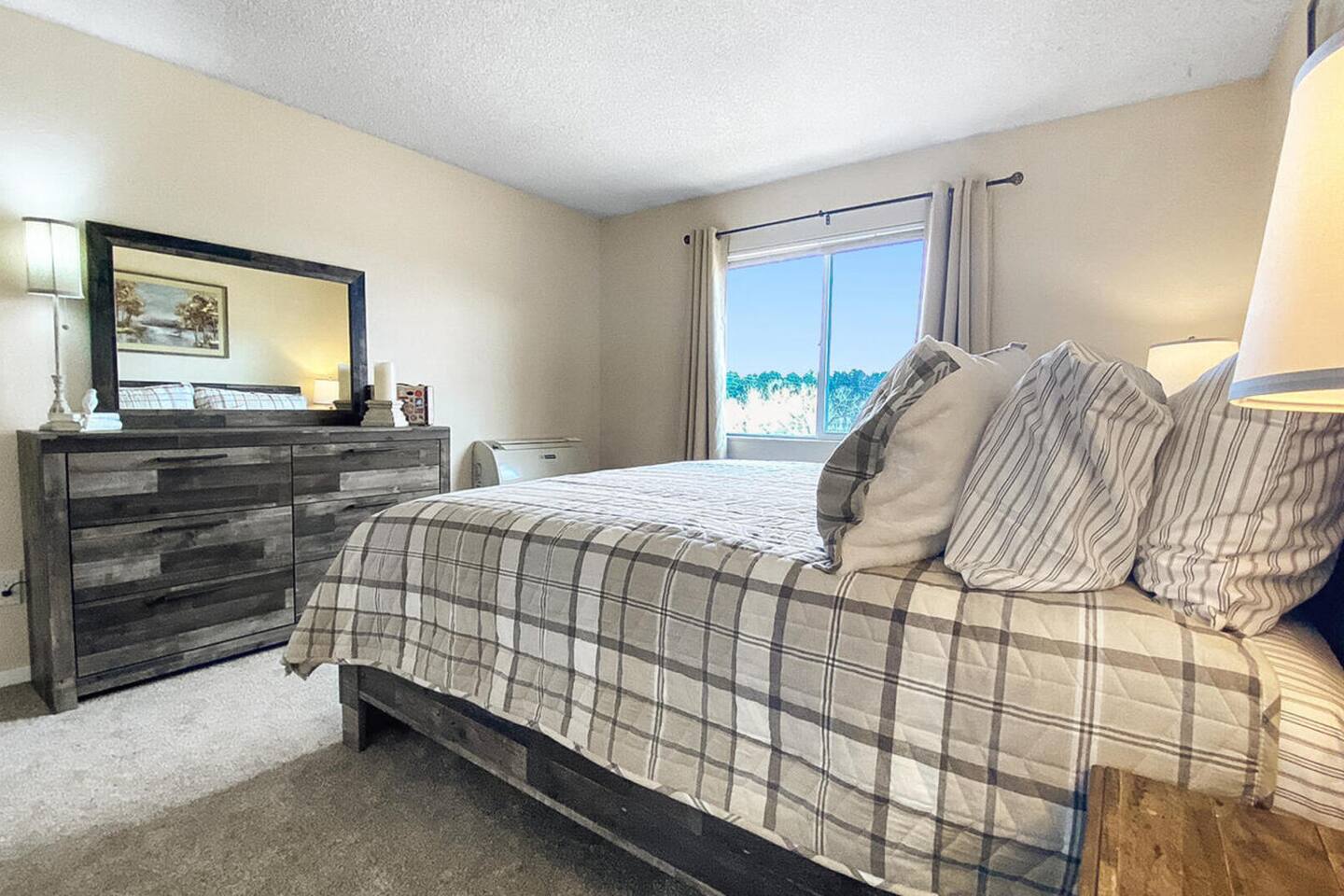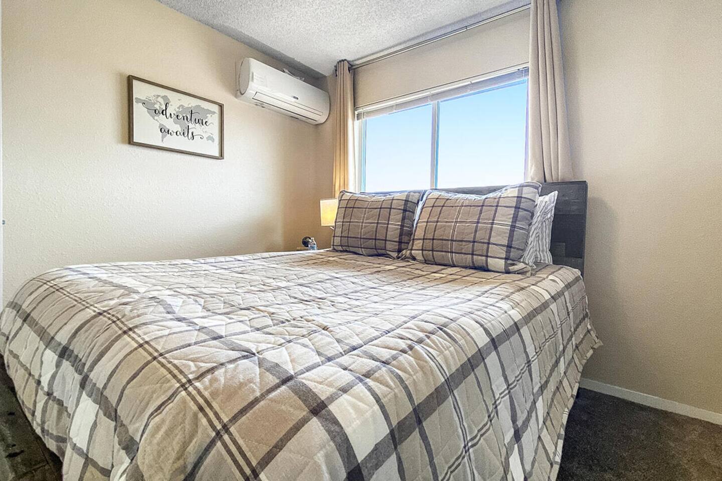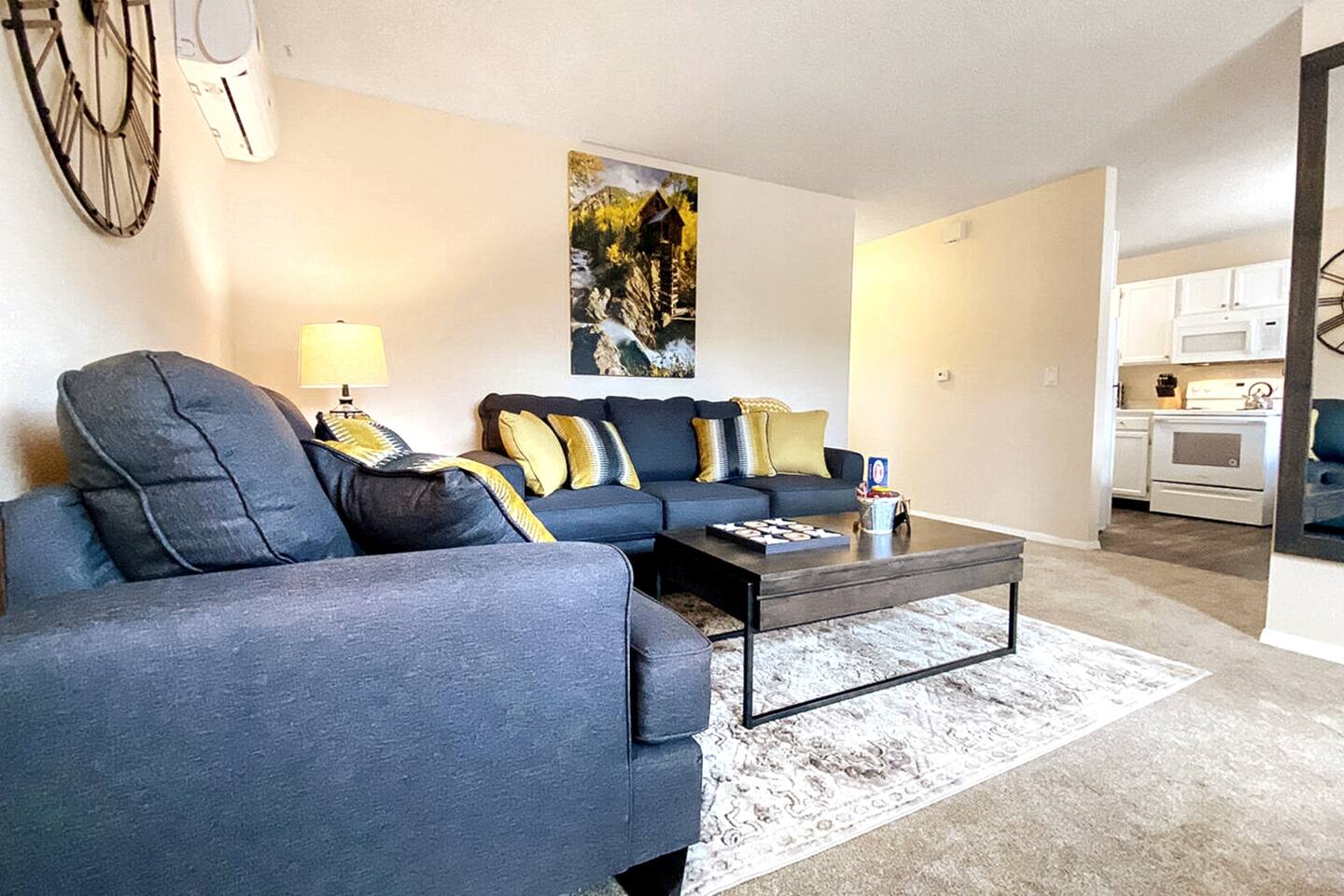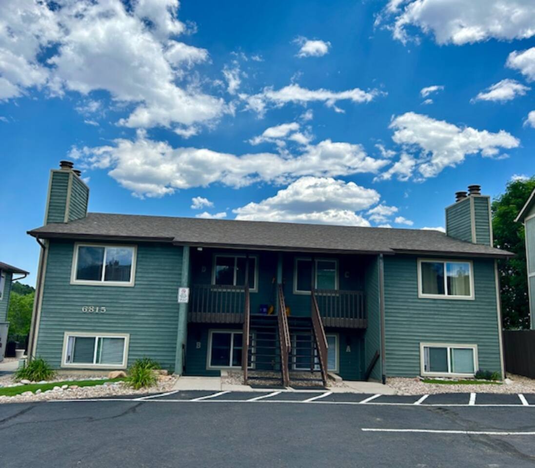 Welcome to a fully furnished retreat! This condo features a well-equipped kitchen and dining area, ensuring a comfortable stay. The living room provides a couch/queen sofa and a large SmartTV with YouTubeTV and DVR for your convenience. This Unit is climate controlled with mini Splits AC units in the living room, master bedroom, and guest room for your comfort. The Master Bedroom features a generously sized walk-in closet, thoughtfully stocked with amenities for families, including a Pack N Play, highchair, and a selection of toys for children. The spacious closet even offers enough room for an infant to comfortably sleep. This non-smoking property boasts ample free parking, a bathroom equipped with both a full shower and bathtub, and the convenience of an in-unit Washer & Dryer for exclusive use. Nestled in a safe neighborhood, this unit in a fourplex includes an outdoor patio with two 2 BBQs for a relaxed dining experience. The location offers accessibility and comfort, with quick access to local fast-food options and amenities like dry cleaners, a beauty shop, a grocery store, and UPS services. Guests appreciate the proximity to popular attractions like the US Air Force Academy and the I-25 freeway, making this Airbnb a practical and comfortable choice for your next stay!