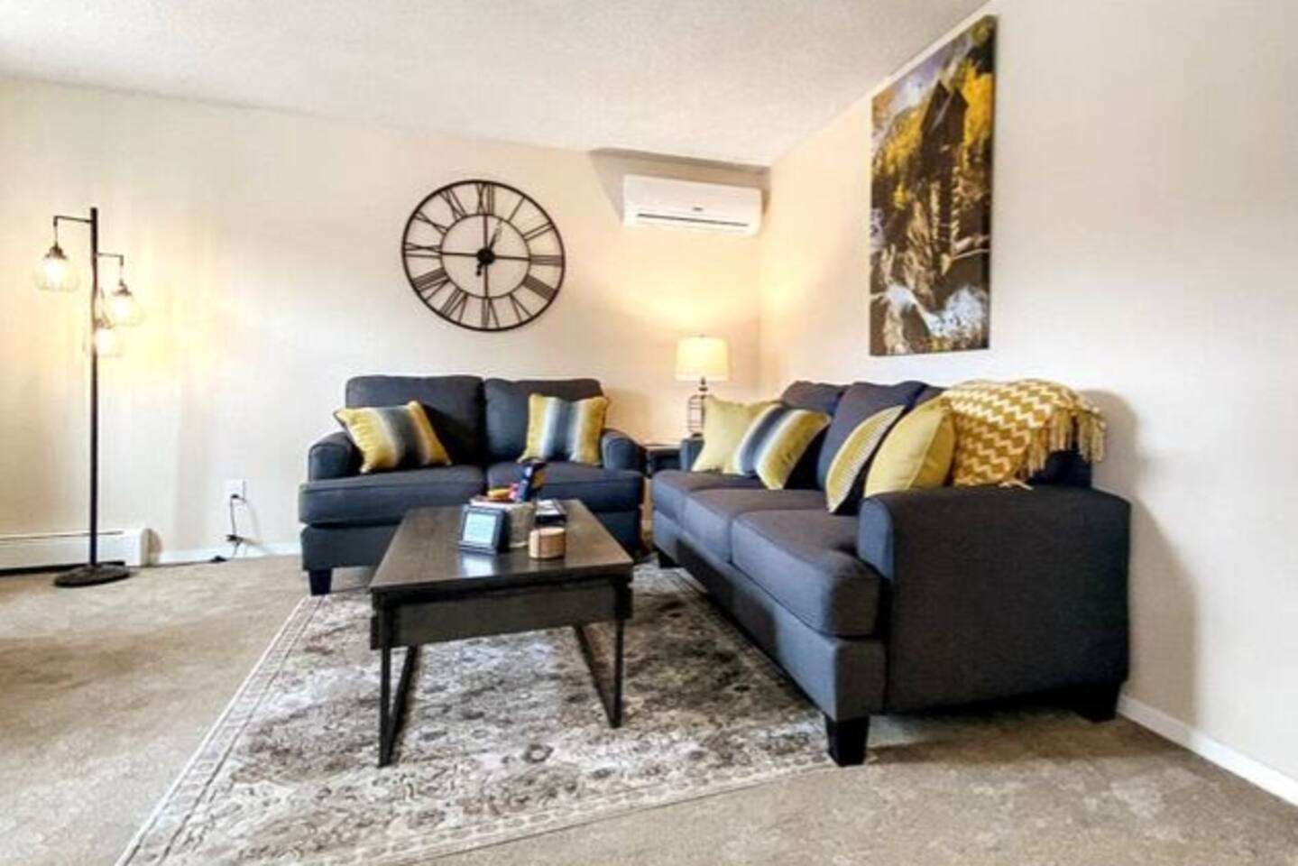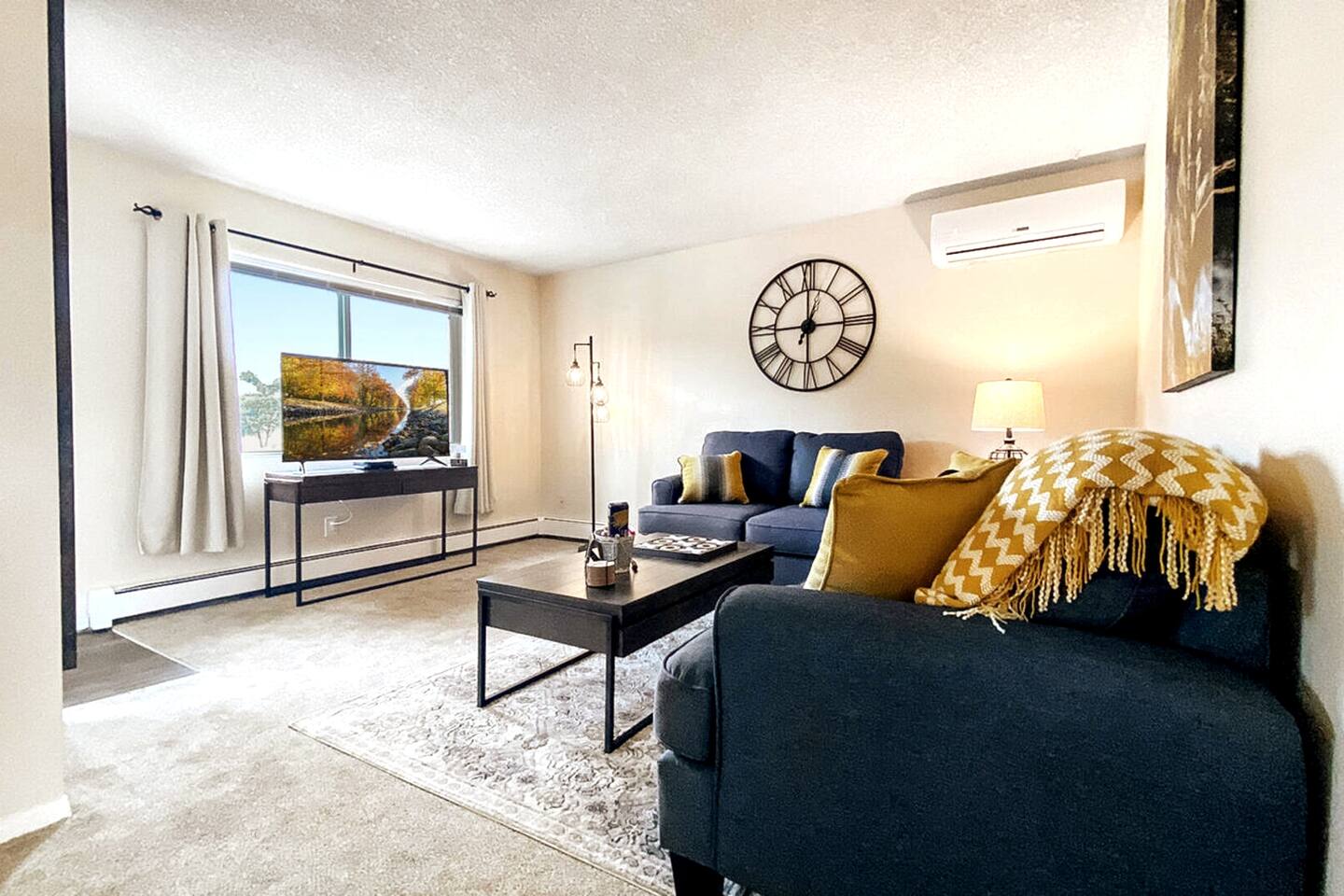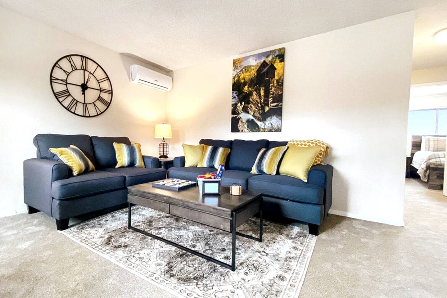 Welcome to a fully furnished retreat! This condo features a well-equipped kitchen and dining area, ensuring a comfortable stay. The living room provides a couch/queen sofa and a large SmartTV with YouTubeTV and DVR for your convenience. This Unit is climate controlled with mini Splits AC units in the living room, master bedroom, and guest room for your comfort. The Master Bedroom features a generously sized walk-in closet, thoughtfully stocked with amenities for families, including a Pack N Play, highchair, and a selection of toys for children. The spacious closet even offers enough room for an infant to comfortably sleep. This non-smoking property boasts ample free parking, a bathroom equipped with both a full shower and bathtub, and the convenience of an in-unit Washer & Dryer for exclusive use. Nestled in a safe neighborhood, this unit in a fourplex includes an outdoor patio with two 2 BBQs for a relaxed dining experience. The location offers accessibility and comfort, with quick access to local fast-food options and amenities like dry cleaners, a beauty shop, a grocery store, and UPS services. Guests appreciate the proximity to popular attractions like the US Air Force Academy and the I-25 freeway, making this Airbnb a practical and comfortable choice for your next stay!