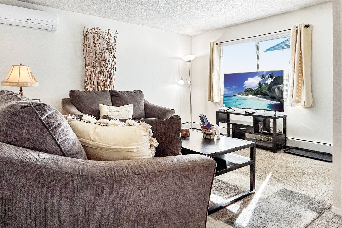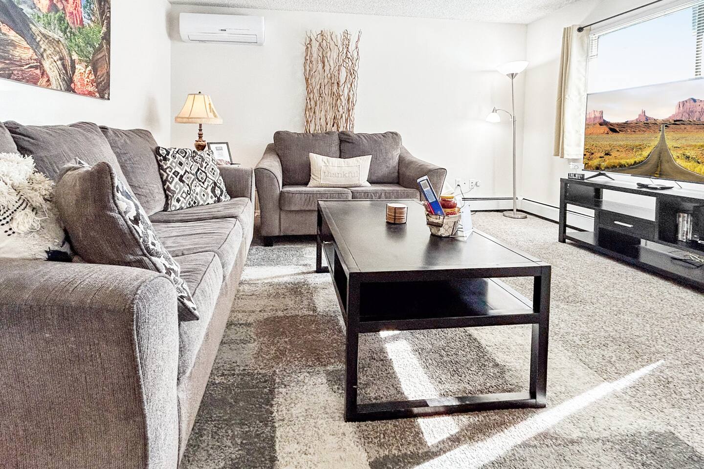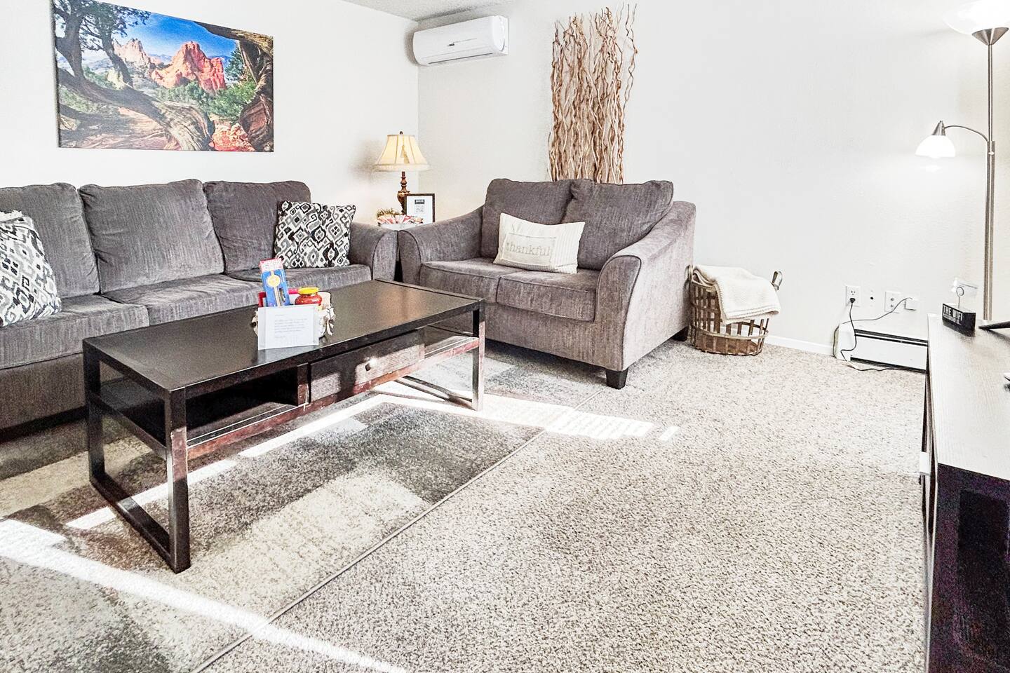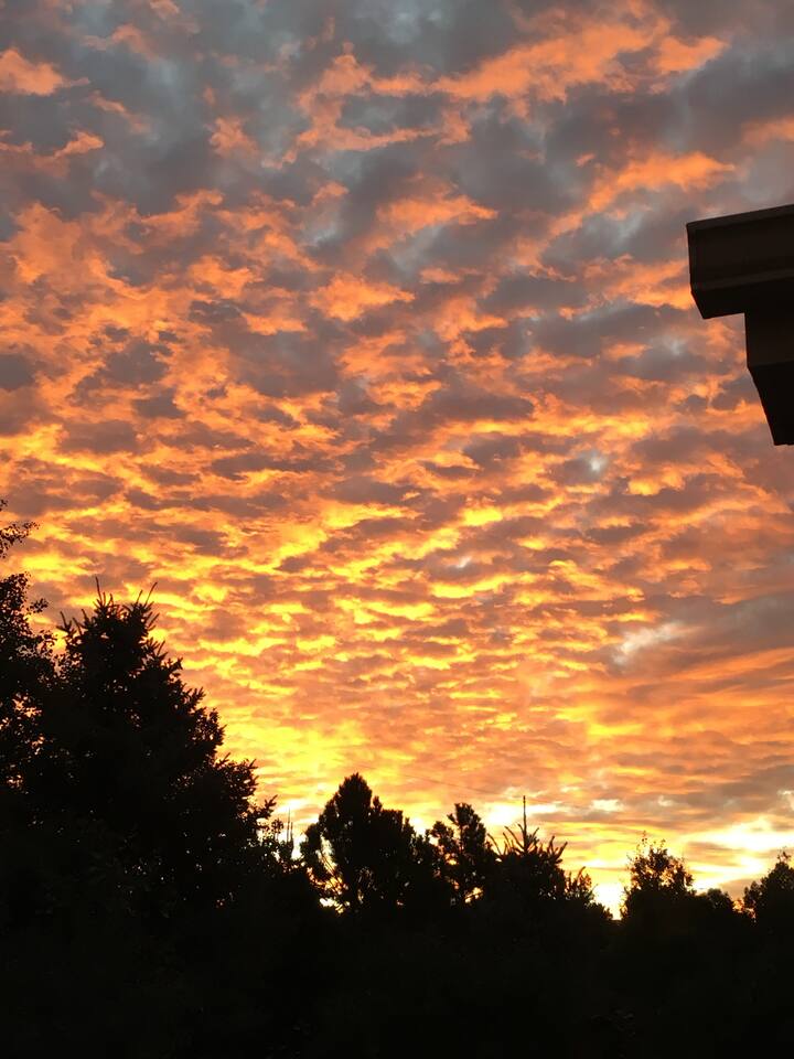 Experience comfort with mini split air conditioners— one in the living room, one int the master bedroom and another in the guest bedroom. Nestled at 7,500 ft high in dry Colorado Springs, humidity concerns fade away. Our suggestion: stay hydrated, as the altitude at 7,500 ft can be eased with plenty of water.