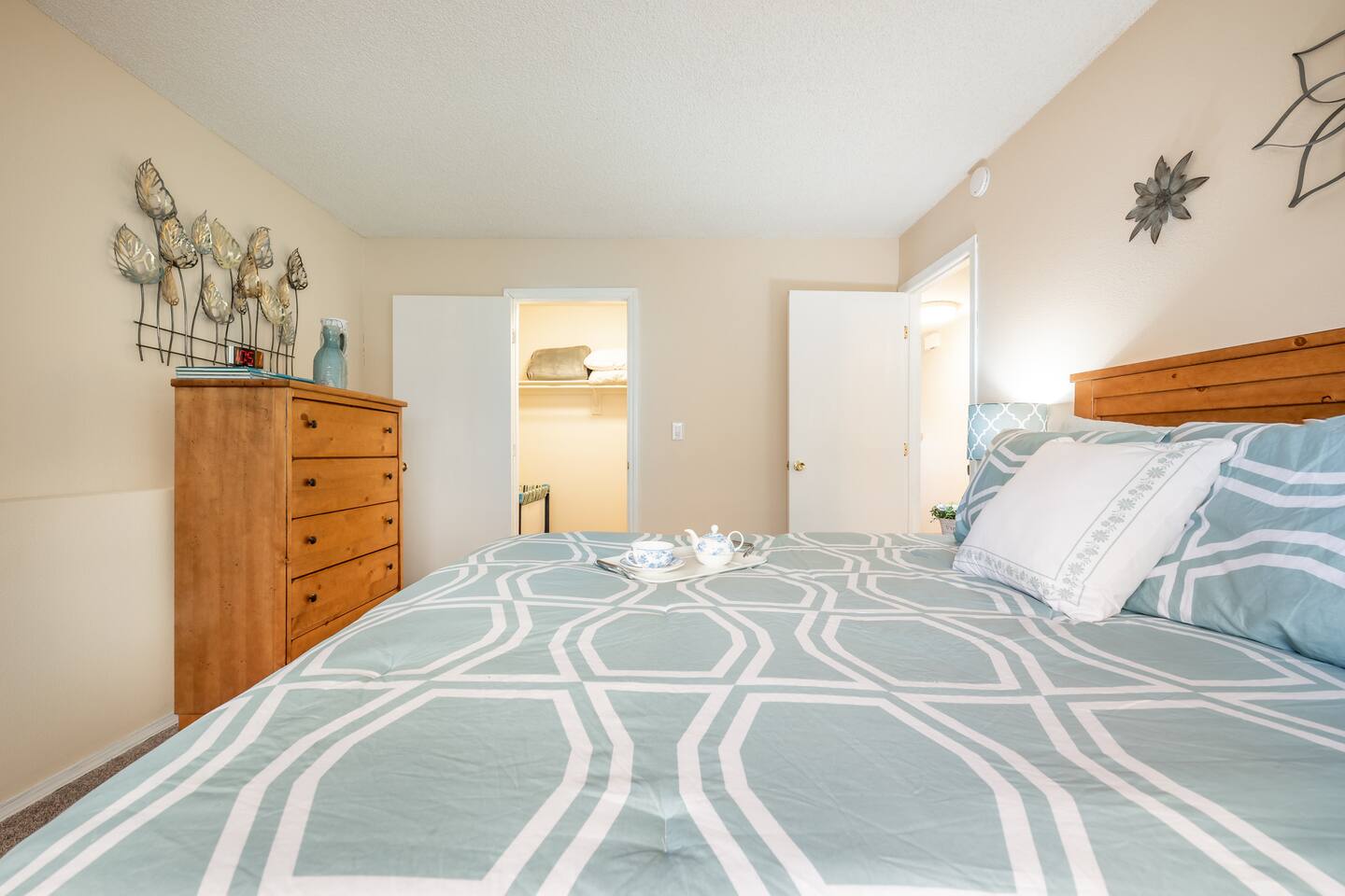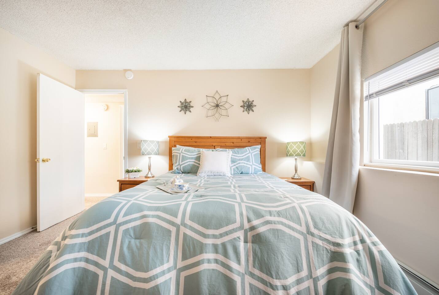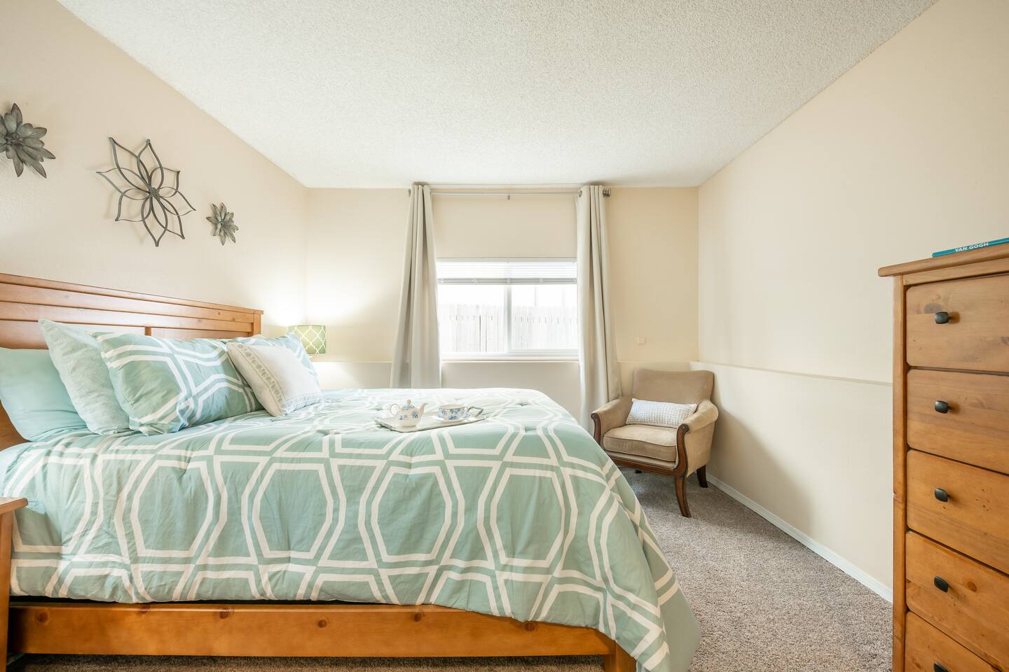 Welcome to a fully furnished retreat! This condo features a well-equipped kitchen and dining area, ensuring a comfortable stay. The living room provides a couch/queen sofa and a large SmartTV with YouTubeTV and DVR for your convenience. The Master Bedroom features a generously sized walk-in closet, thoughtfully stocked with amenities for families, including a Pack N Play, highchair, and a selection of toys for children. The spacious closet even offers enough room for an infant to comfortably sleep. This non-smoking property boasts ample free parking, a bathroom equipped with both a full shower and bathtub, and the convenience of an in-unit Washer & Dryer for exclusive use. Nestled in a safe neighborhood, this ground-level unit in a fourplex includes an outdoor patio with two 2 BBQs for a relaxed dining experience. The location offers accessibility and comfort, with quick access to local fast-food options and amenities like dry cleaners, a beauty shop, a grocery store, and UPS services. Guests appreciate the proximity to popular attractions and the I-25 freeway, making this Airbnb a practical and comfortable choice for your next stay!