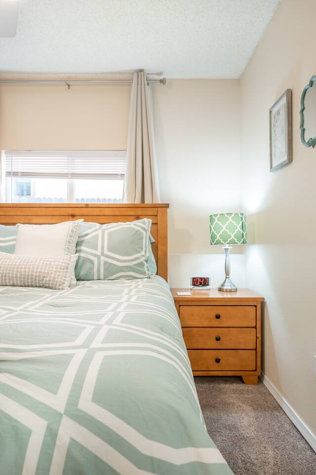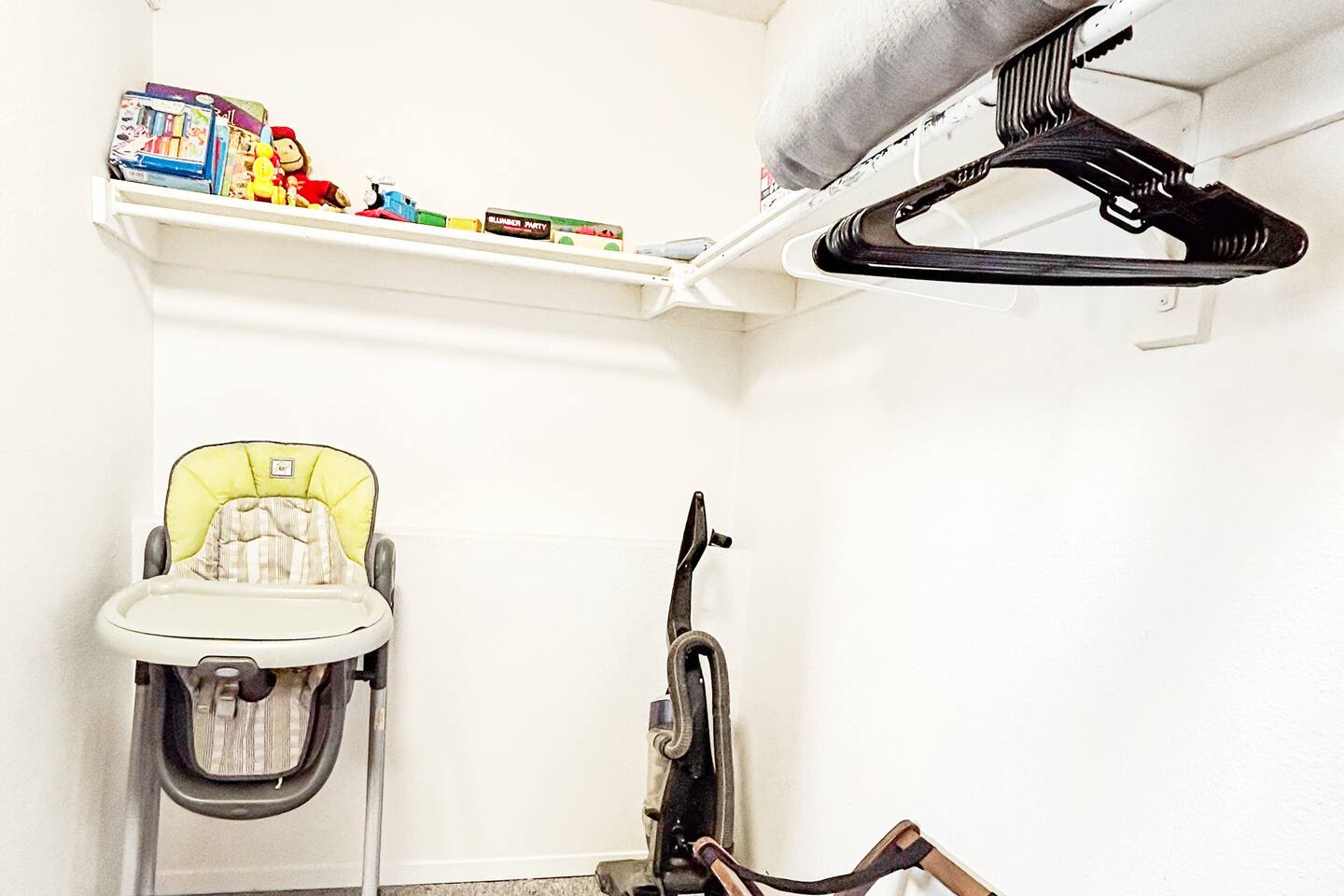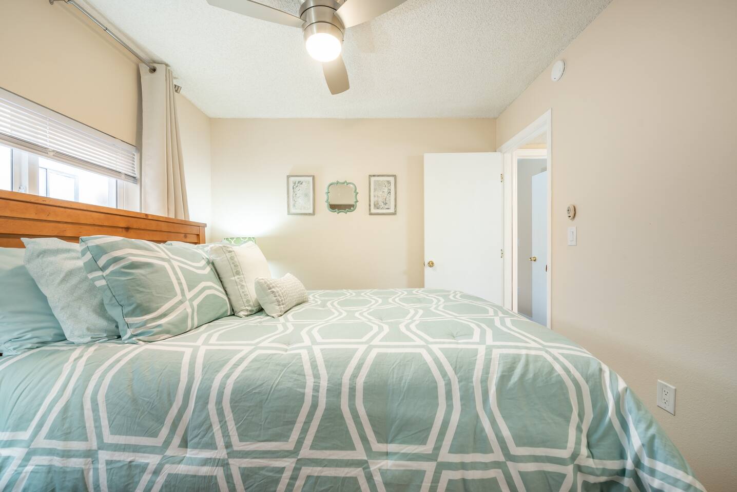 Welcome to a fully furnished retreat! This condo features a well-equipped kitchen and dining area, ensuring a comfortable stay. The living room provides a couch/queen sofa and a large SmartTV with YouTubeTV and DVR for your convenience. The Master Bedroom features a generously sized walk-in closet, thoughtfully stocked with amenities for families, including a Pack N Play, highchair, and a selection of toys for children. The spacious closet even offers enough room for an infant to comfortably sleep. This non-smoking property boasts ample free parking, a bathroom equipped with both a full shower and bathtub, and the convenience of an in-unit Washer & Dryer for exclusive use. Nestled in a safe neighborhood, this ground-level unit in a fourplex includes an outdoor patio with two 2 BBQs for a relaxed dining experience. The location offers accessibility and comfort, with quick access to local fast-food options and amenities like dry cleaners, a beauty shop, a grocery store, and UPS services. Guests appreciate the proximity to popular attractions and the I-25 freeway, making this Airbnb a practical and comfortable choice for your next stay!