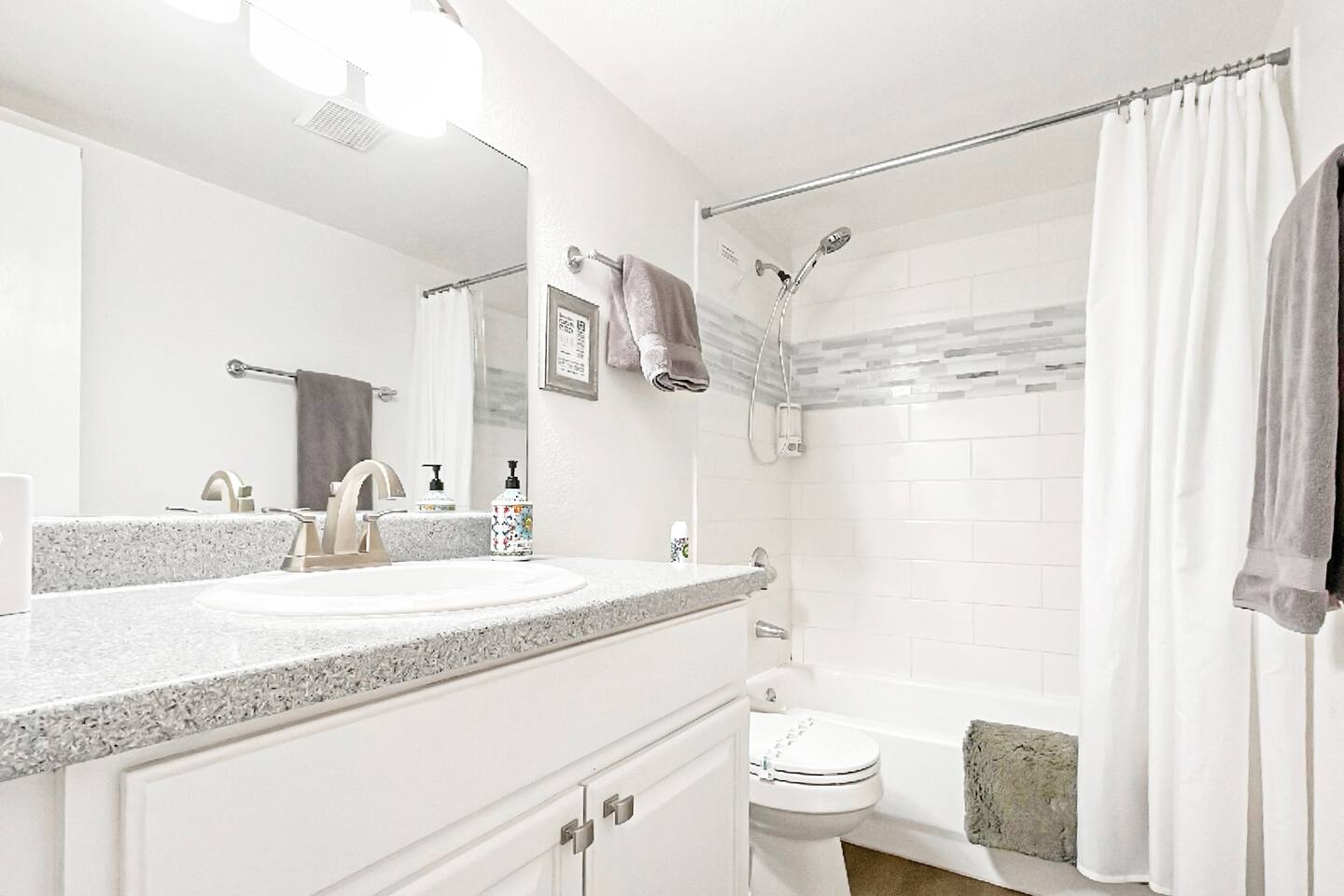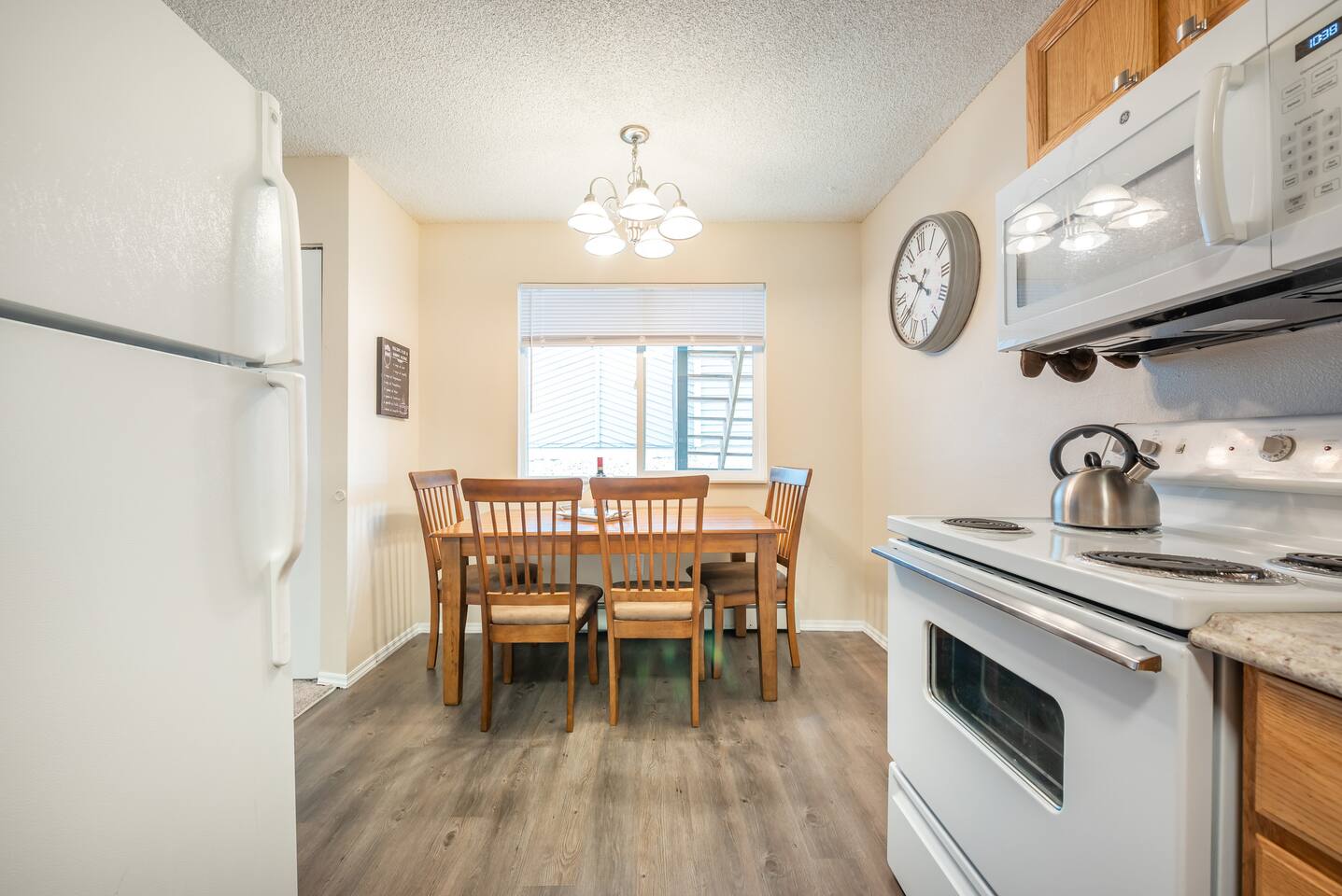 Experience comfort and style in our 2-bedroom condo with a full bath, well-equipped kitchen, and a cozy living room boasting a 55" Smart TV. Perfect for families, a Pack N Play is provided. Enjoy convenience with free parking, central location, and nearby hiking trails. Benefit from private access, eliminating public hallways. Revel in in-unit amenities: washer/dryer, WiFi, YouTubeTV, and a dining room. Unwind on the shared patio with 2 BBQs. Your centrally located haven awaits! A-STRP-25-0867