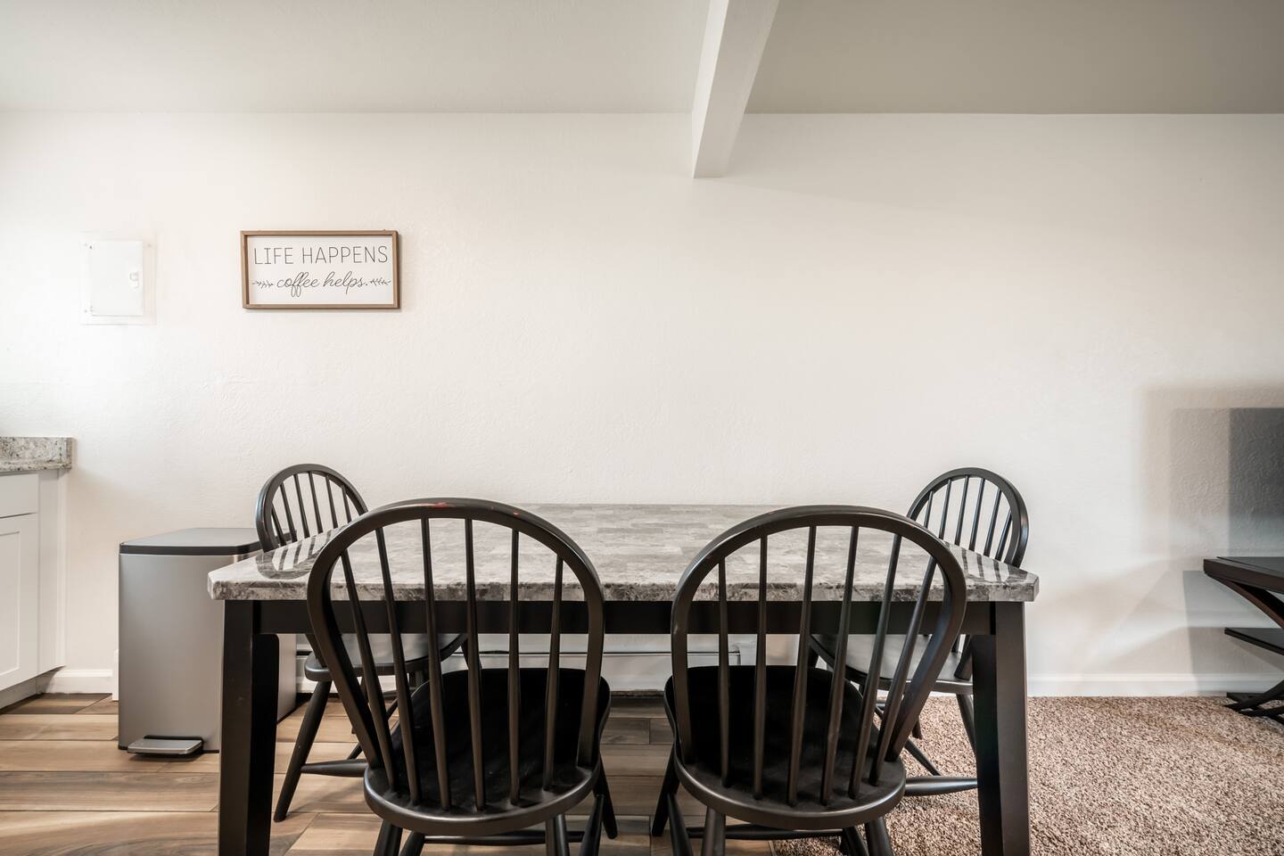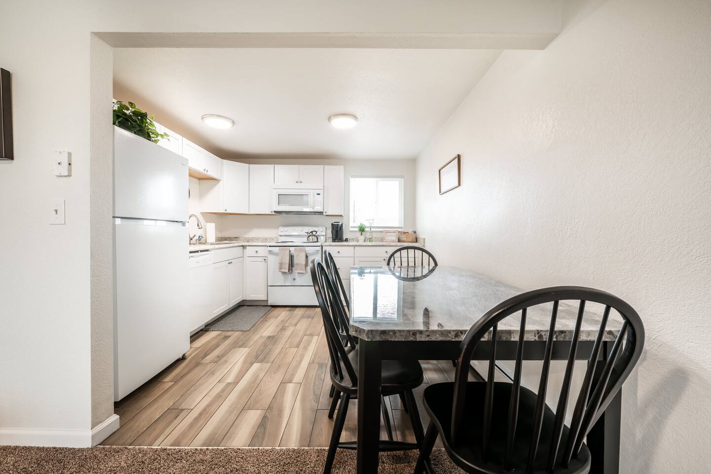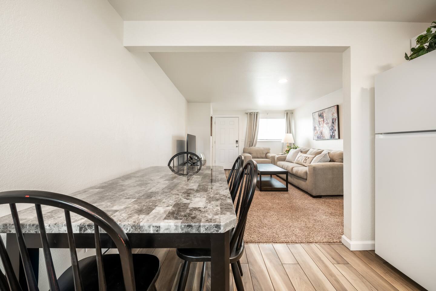 We are located in an apartment neighborhood with great views, neighboring houses, a local golf course and Palmer Park which boasts some of the greatest mountain biking trails in CO. We are next to some of the best shopping in Co Springs along the Powers corridor. This is the upper left unit of our four plex. The unit will be private to you, including the two bedrooms, one bathroom, kitchen, dining room, and living room. The laundry facilities are open to all guests/tenants (coin-operated). The parking lot is sufficient for guests to bring up to two cars. You may park in our gravel lot or carport. We hope it is the perfect home base for your adventures in Colorado Springs.