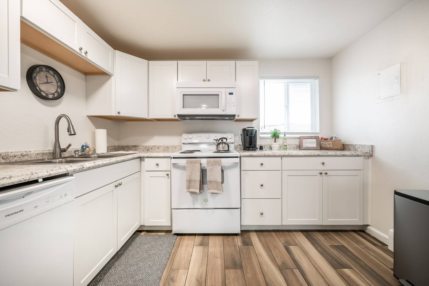 Our adorable 745 SQFT apartment is tucked away at the end of a cul de sac with a beautiful Pikes Peak view & is near many CO Springs attractions, grocery stores & shopping. You will be welcomed with a sparkling clean space & thoughtful touches including coffee, spices, & oil. The 2 bedrooms & 1 full bath have been freshly remodeled. Keeping your comfort in mind, we have included an LED Smart TV (w/YoutubeTV), radiant heat, private parking, & laundry (coin-op). We are excited to host your stay!